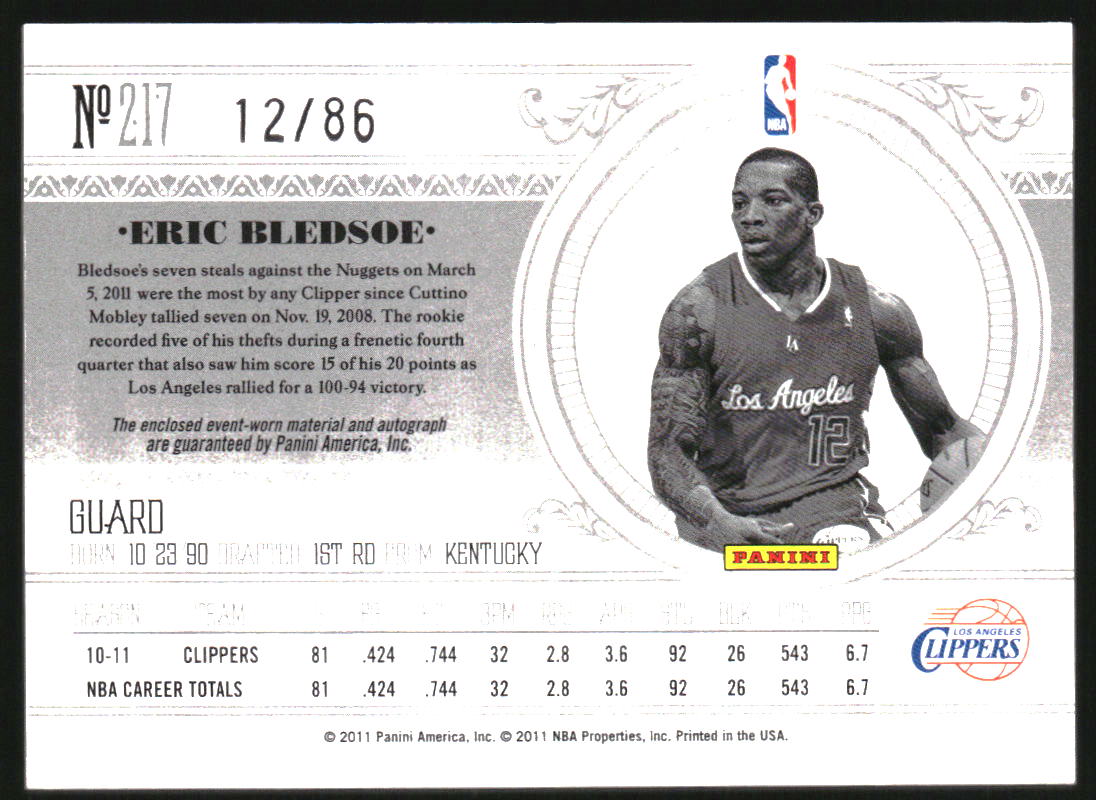 2010 National Treasures #217 Eric Bledsoe Rookie Jersey Autograph RC Auto /86