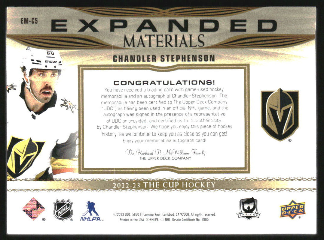 2022-23 The Cup Expanded Material Autographs #EMCS Chandler Stephenson Auto /25