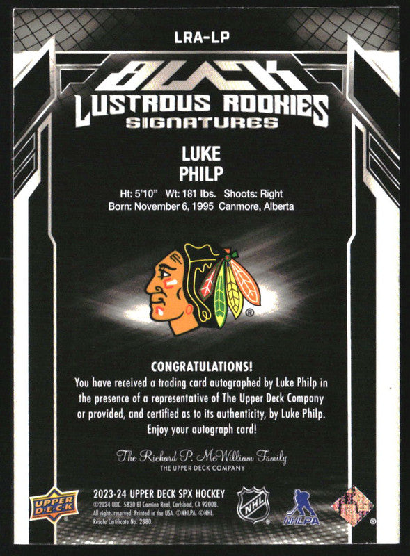 2023-24 Upper Deck Black Lustrous Rookies Signature Luke Philp RC Auto /299