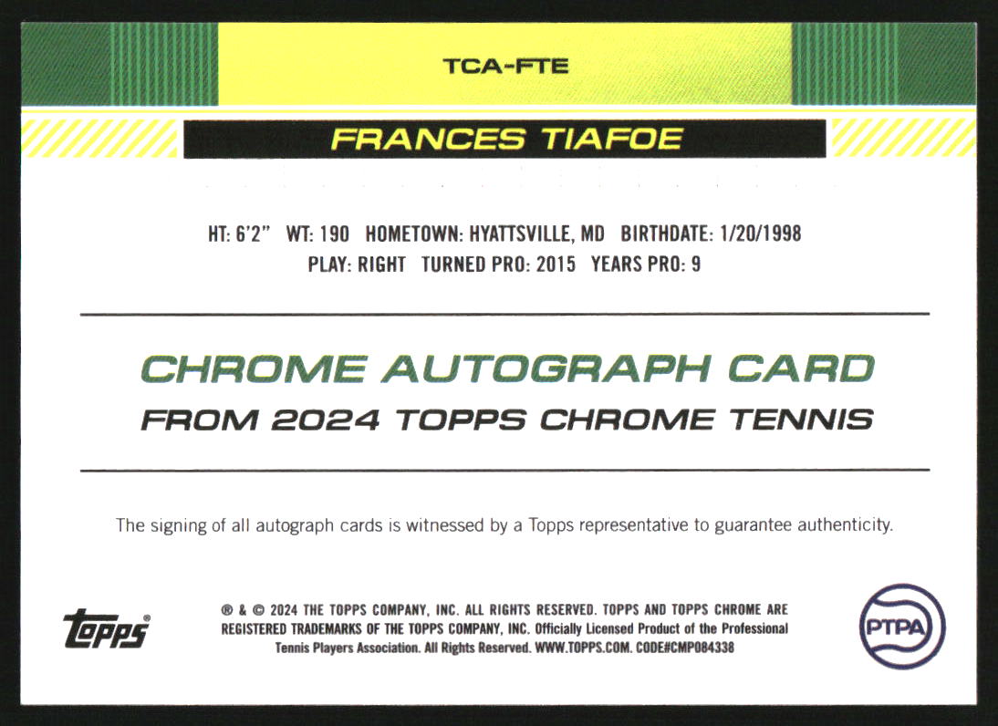 2024 Topps Chrome Tennis Autographs II #TCAFTE Frances Tiafoe Auto