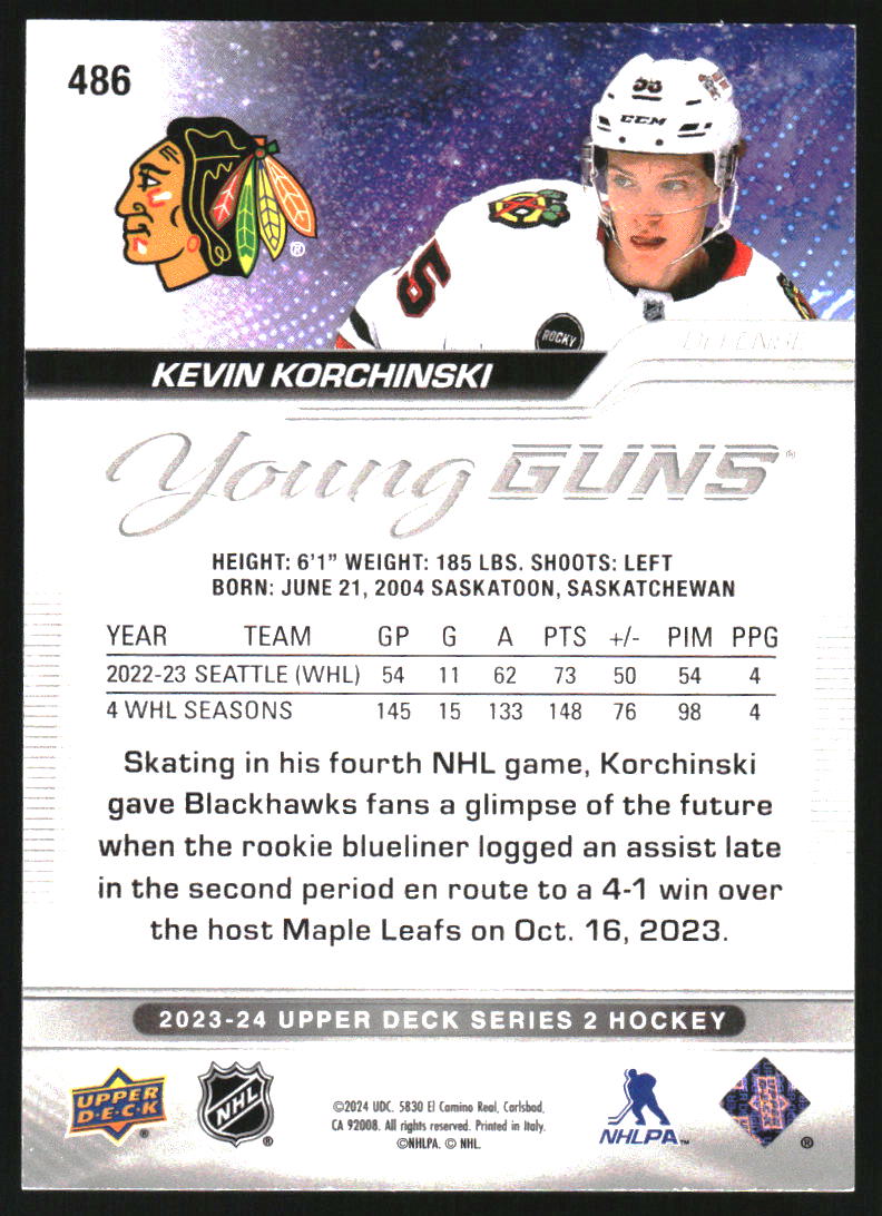 2023-24 Upper Deck Deluxe #486 Kevin Korchinski Young Guns RC Rookie /250