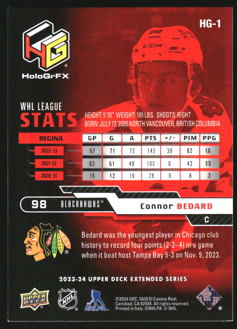 2023-24 Upper Deck HoloGrFx Rookies #HG1 Connor Bedard RC