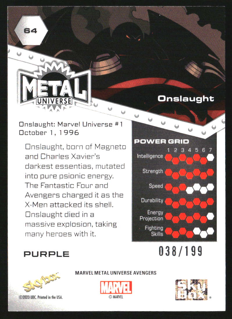 2024 SkyBox Marvel Metal Universe Avengers Purple FX #64 Onslaught /199
