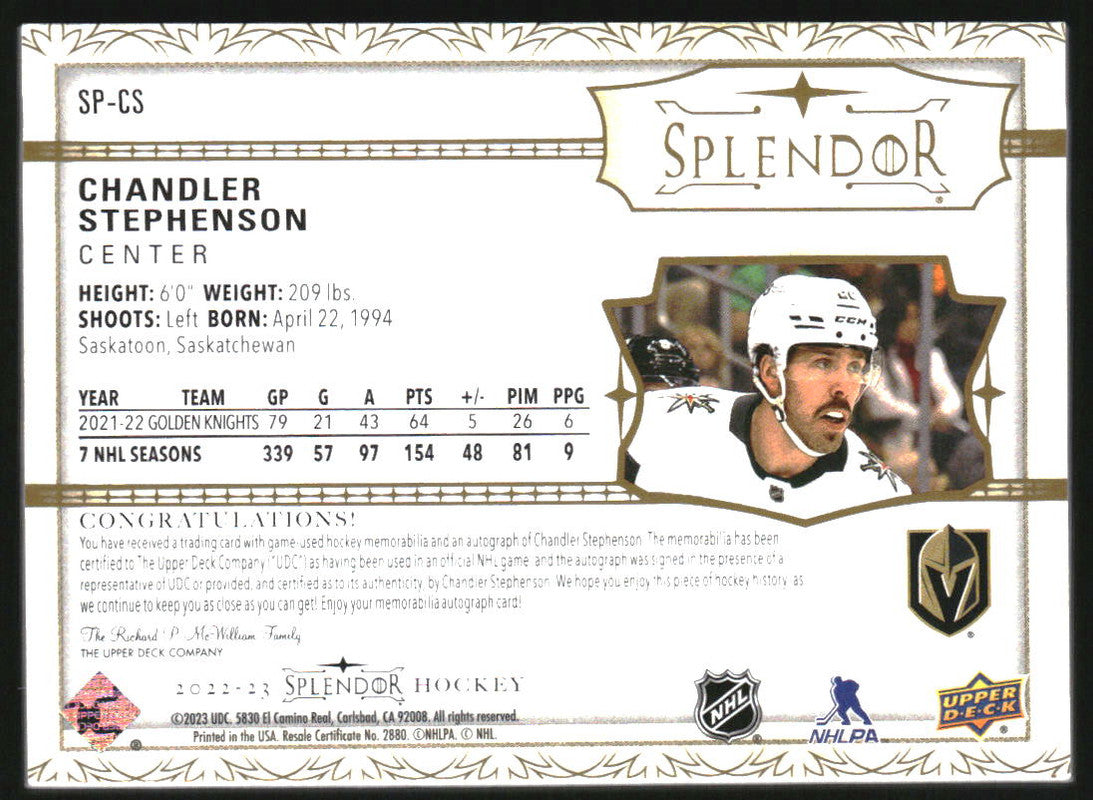 2022-23 Upper Deck Splendor Autograph Patch Chandler Stephenson Auto /36