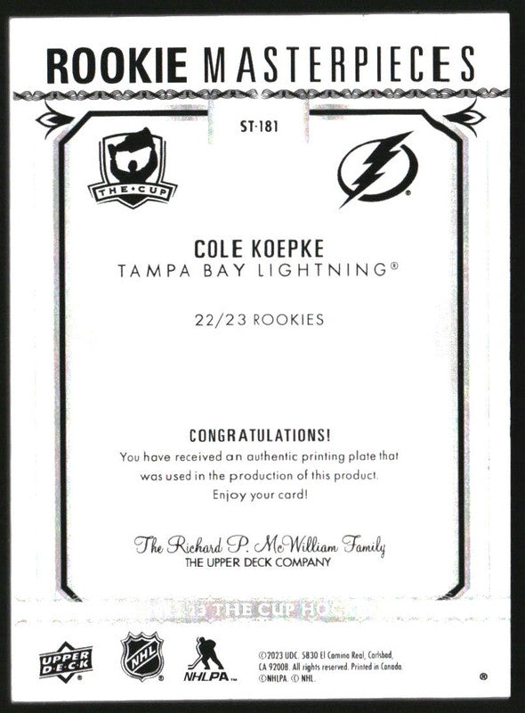 2022 The Cup Rookie Masterpieces Printing Plate Magenta Cole Koepke RC 1/1