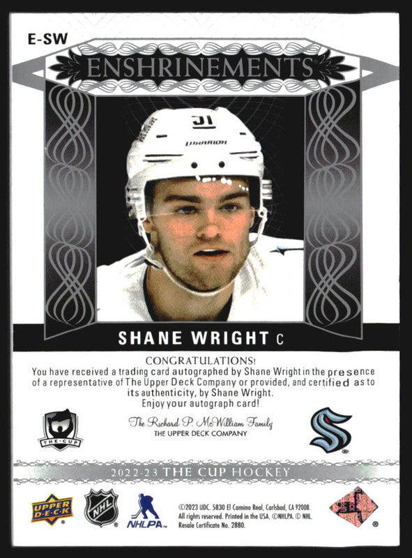 2022-23 The Cup Enshrinements #ESW Shane Wright Autograph Auto /99