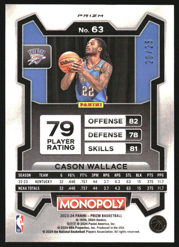 2023-24 Panini Prizm Monopoly Question Mark #63 Cason Wallace RC /25