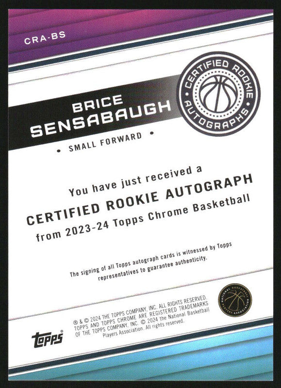2023-24 Topps Chrome Rookie Autographs Black Wave Brice Sensabaugh RC Auto /10