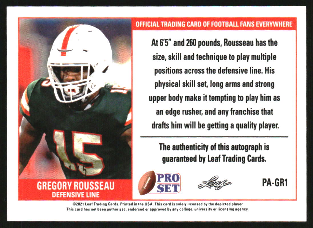 2021 Leaf Pro Set Metal Autograph Rainbow White Gregory Rousseau RC Auto /5