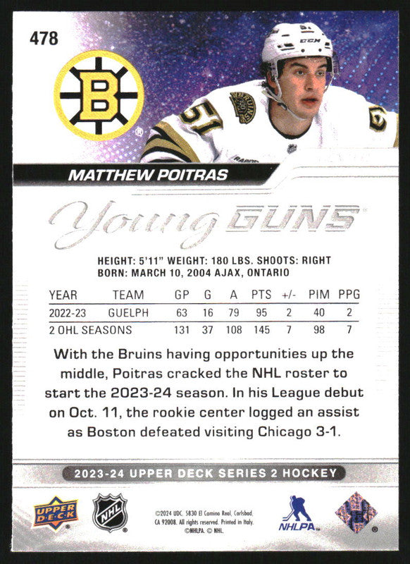 2023-24 Upper Deck #478 Matthew Poitras Young Guns RC Rookie
