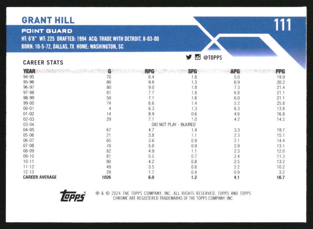 2023-24 Topps Chrome Orange Geometric Refractors #111 Grant Hill /25