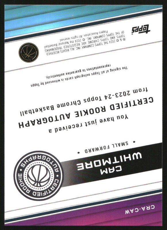 2023-24 Topps Chrome Rookie Autographs #CRACAW Cam Whitmore RC Auto