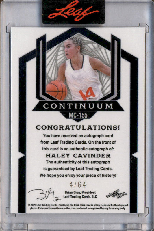 2023 Leaf Continumm Blue Autograph Haley Cavinder Auto /64