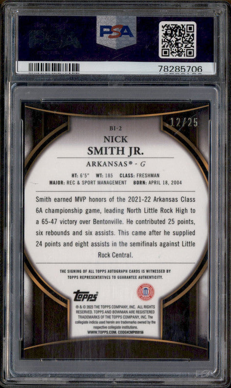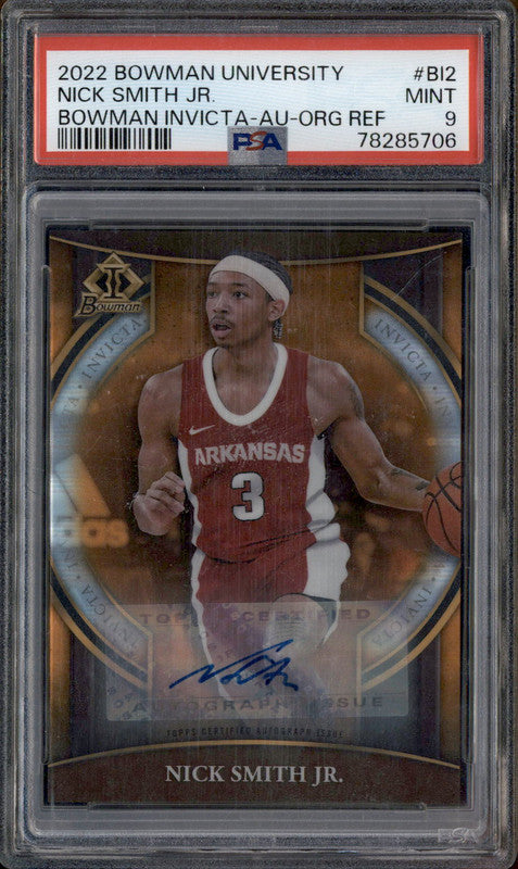 2022 Bowman University Invicta Auto Orange Refractor Nick Smith Jr /25 PSA 9