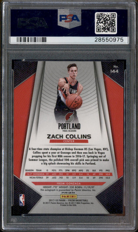 2017 Panini Prizm Rookie Autograph #144 Zach Collins RC Auto PSA 10