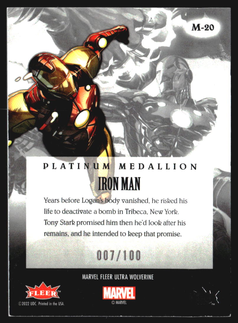 2022 Fleer Ultra Avengers Medallions Platinum #M20 Iron Man /100