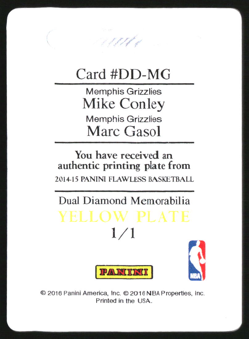 2014 Flawless Dual Printing Plate Yellow Mike Conley Marc Gasol 1/1