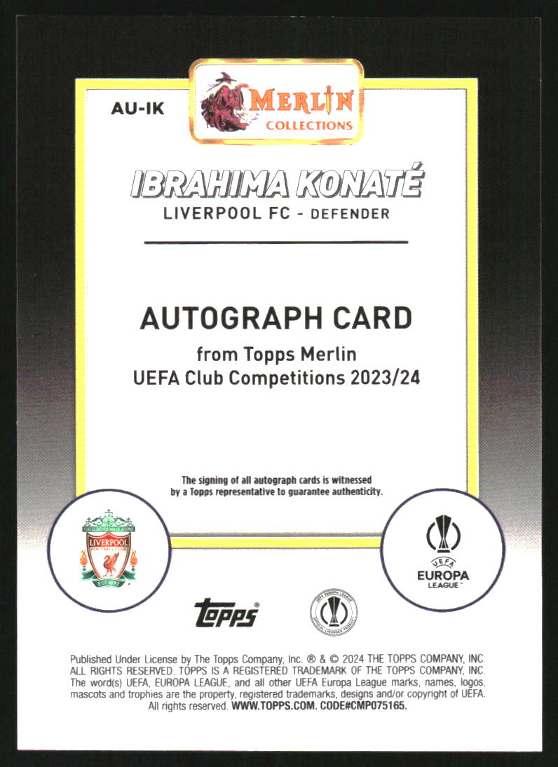 2023-24 Merlin UEFA Club Competitions Auto Orange Ibrahima Konate /25