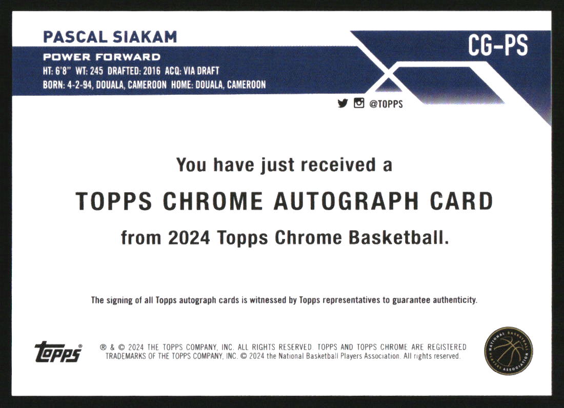 2023-24 Topps Chrome Autographs Gold Refractors #CGPS Pascal Siakam Auto /50