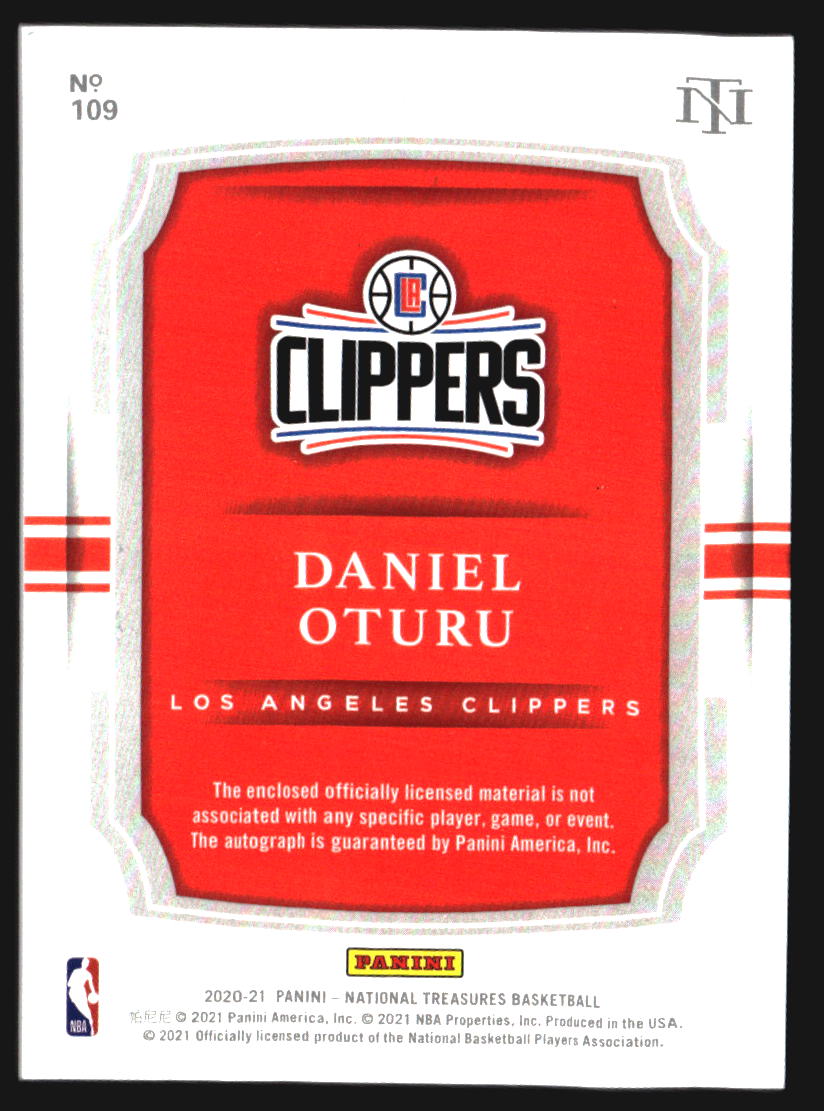 2020-21 Panini National Treasures #109 Daniel Oturu RC Jersey Auto /99