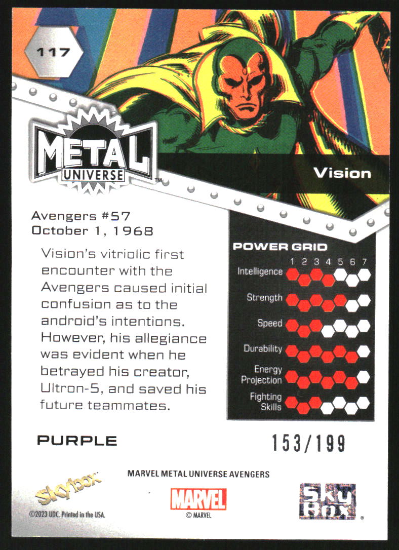 2024 SkyBox Marvel Metal Universe Avengers Purple FX #117 Vision /199