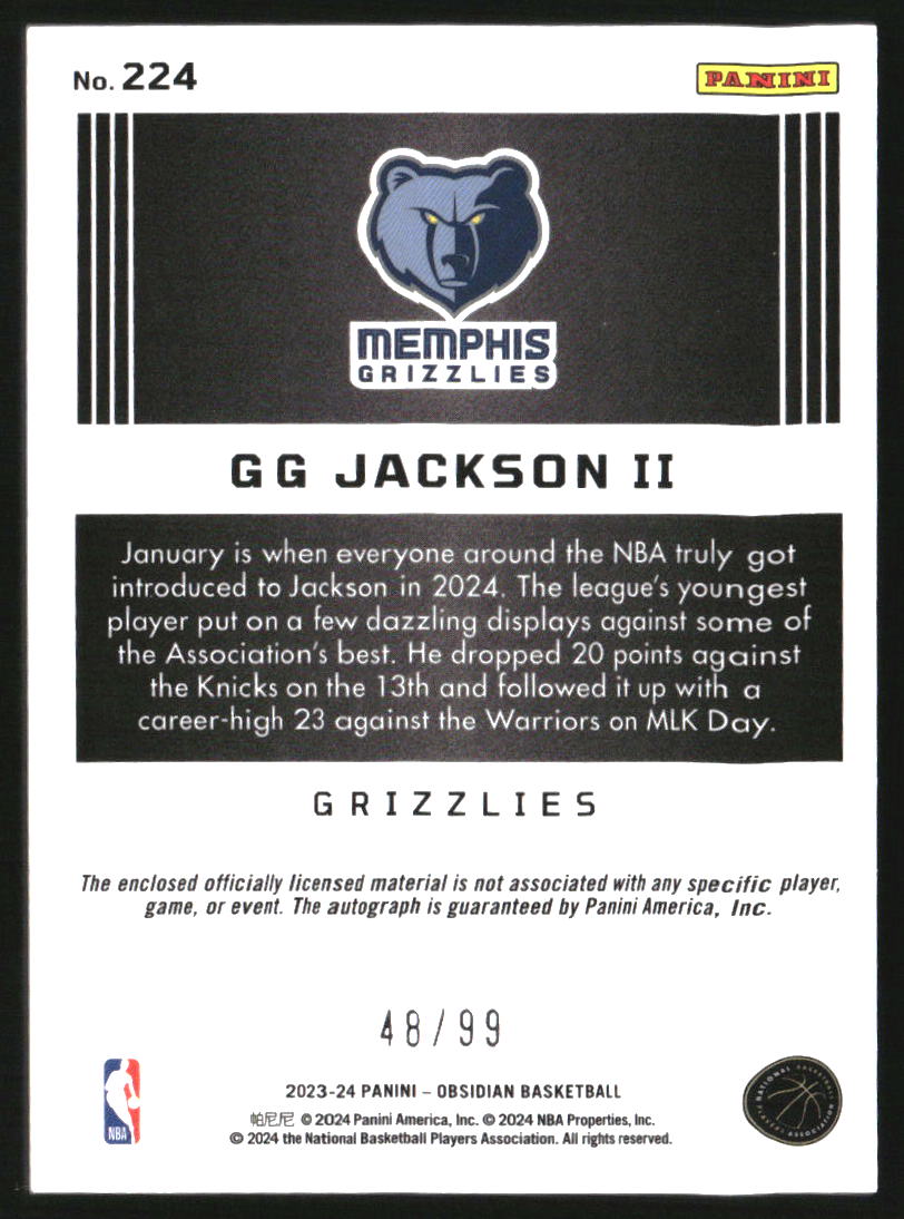 2023-24 Panini Obsidian #224 GG Jackson II RC Jersey Auto /99