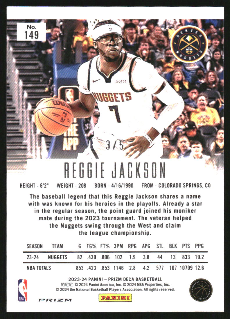 2023-24 Panini Prizm Deca Prizms Black Gold #149 Reggie Jackson /5