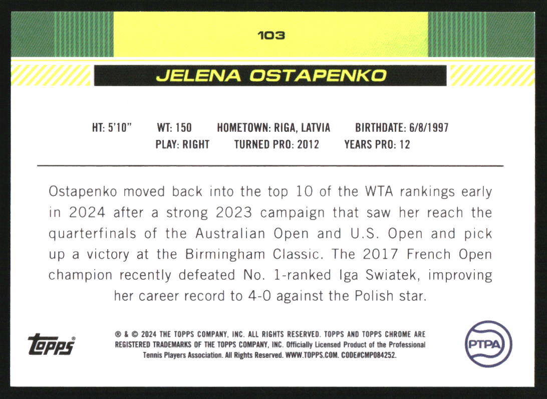 2024 Topps Chrome Tennis Purple Geometric Refractors #103 Jelena Ostapenko /15