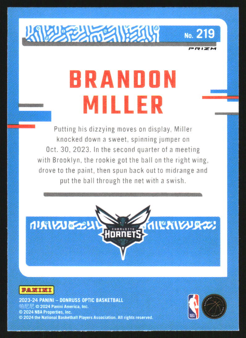 2023-24 Donruss Optic Holo #219 Brandon Miller RR RC Rookie