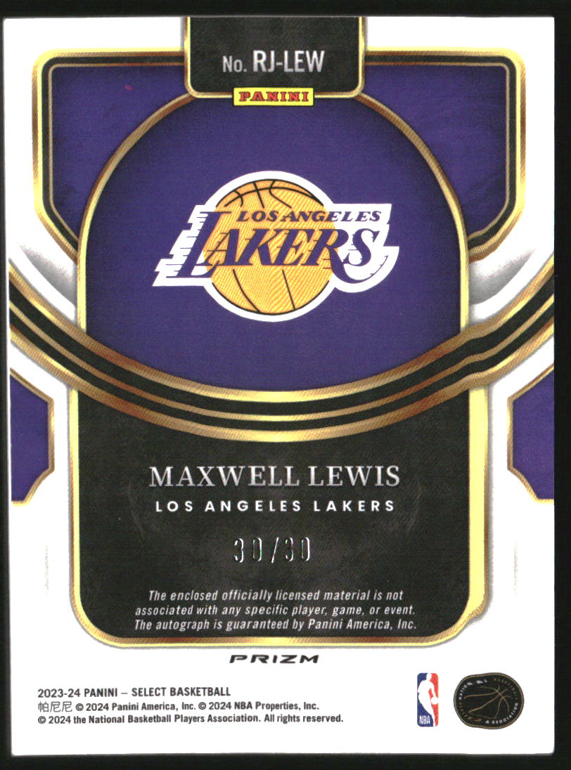 2023-24 Select Rookie Jersey Auto Neon Orange Pulsar Prizms Maxwell Lewis RC /30