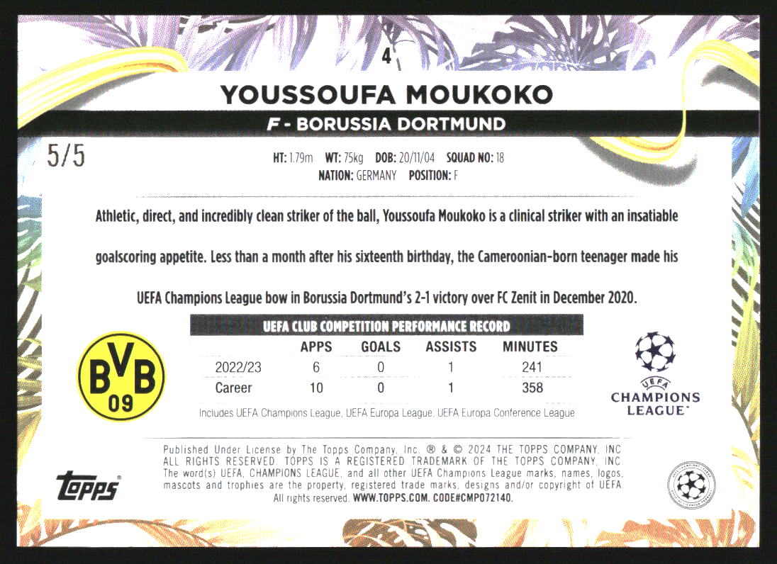 2023-24 Topps UEFA Champions League Red #4 Youssoufa Moukoko /5