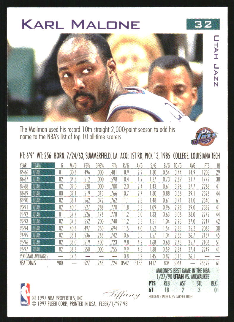 1997-98 Fleer Tiffany Collection #32 Karl Malone