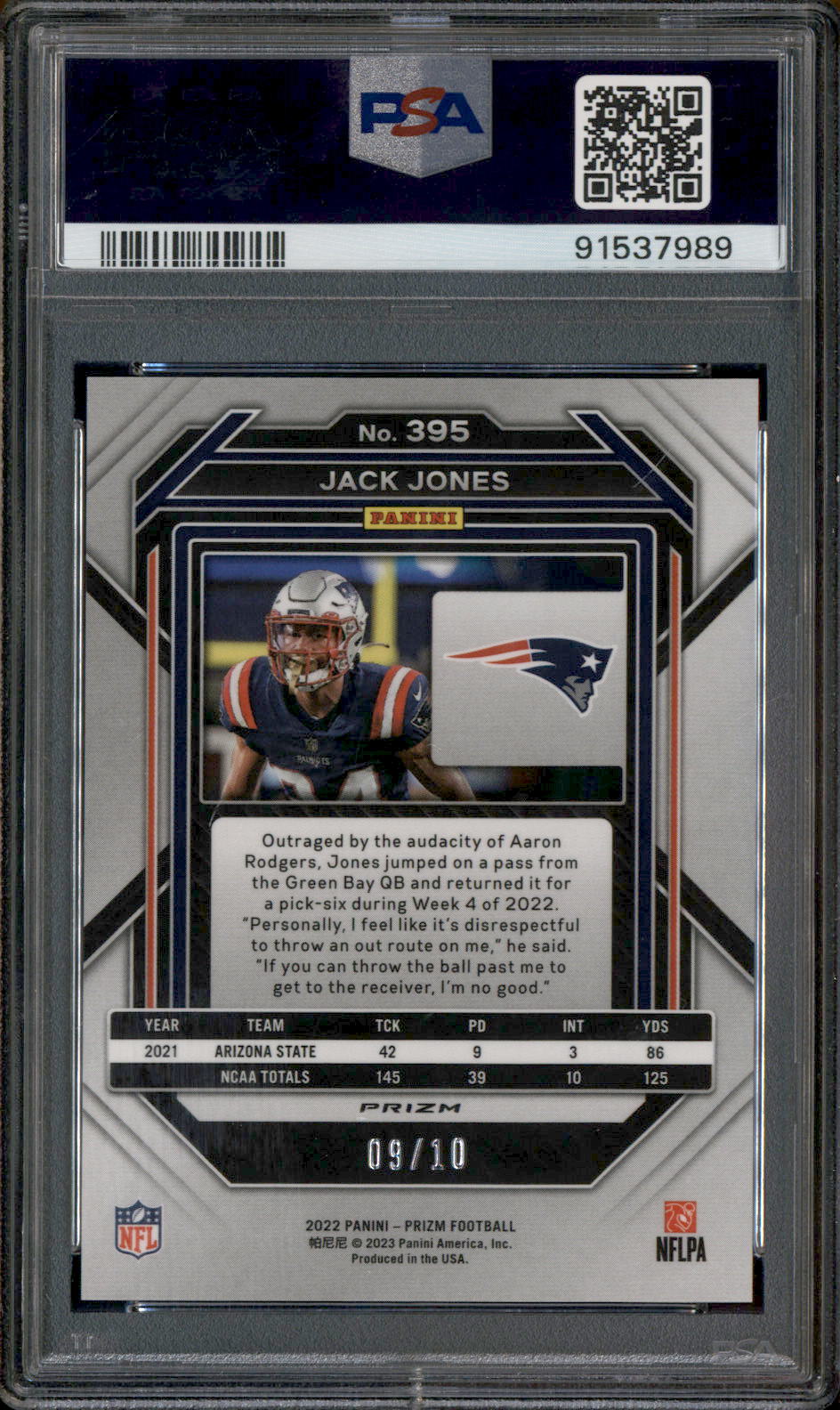 2022 Panini Prizm Gold #395 Jack Jones RC Rookie /10 PSA 9