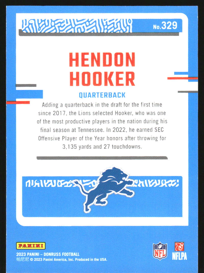 2023 Donruss Press Proof Black #329 Hendon Hooker RR RC Rookie /10