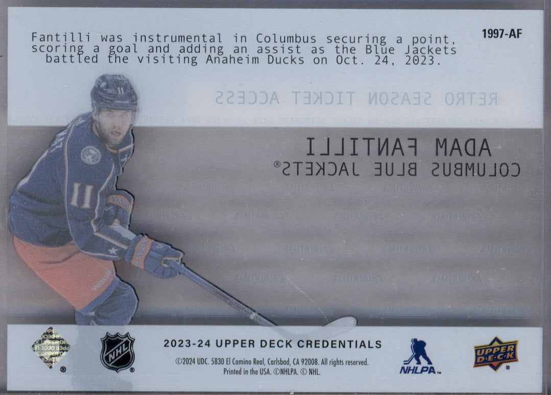 2023 Upper Deck Credentials '97 Season Ticket Acetate Rookies Adam Fantilli RC