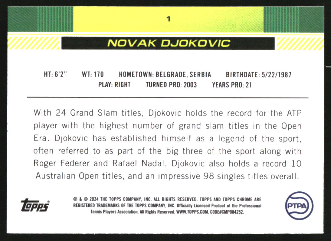 2024 Topps Chrome Tennis Pink Geometric Refractors #1 Novak Djokovic /65