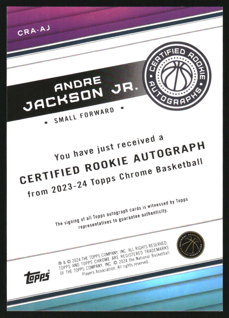 2023 Topps Chrome Rookie Autograph Gold Refractors Andre Jackson Jr. RC Auto /50
