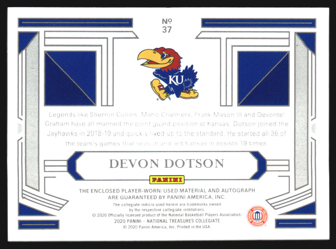 2020 National Treasure Collegiate College Material Auto Gold Devon Dotson RC /10