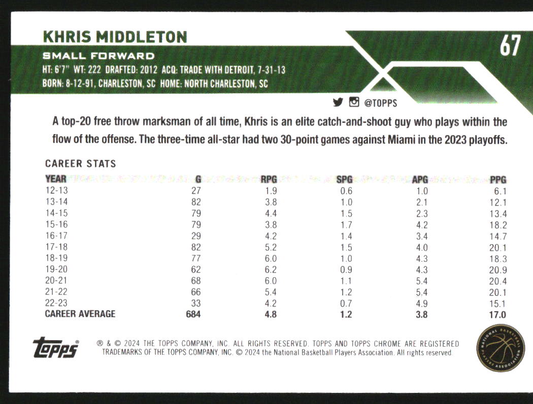 2023-24 Topps Chrome Black Refractors #67 Khris Middleton /10