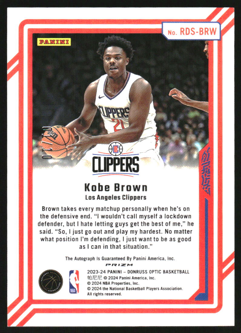 2023-24 Donruss Optic Rookie Dominators Signatures Gold Kobe Brown RC Auto /10