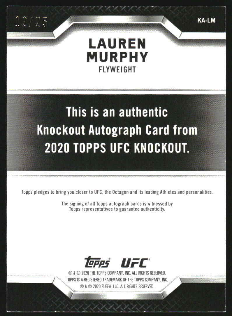 2020 Topps UFC Knockout Autographs Purple #KALM Lauren Murphy Auto /25