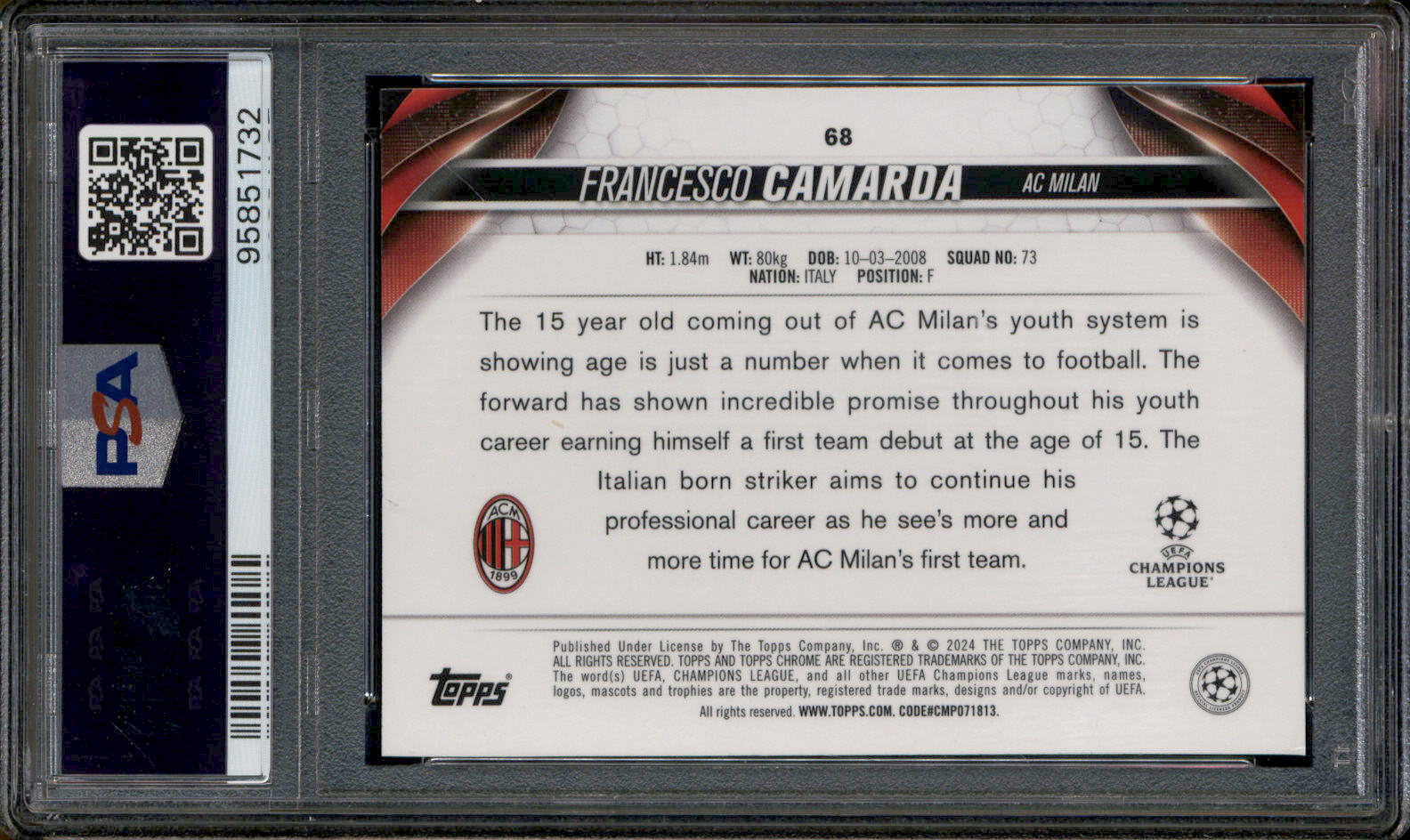 2023 Topps Chrome UCC Pulsar #68 Francesco Camarda RC Rookie PSA 10