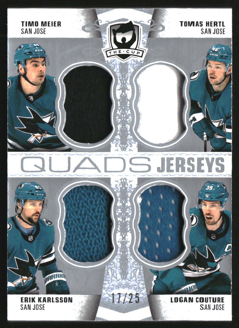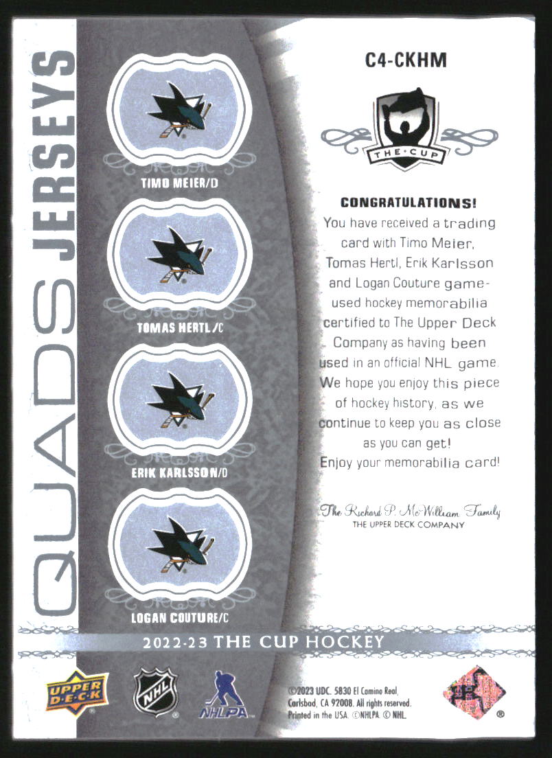2022 The Cup Quad Jerseys Timo Meier Tomas Hertl Erik Karlsson Logan Couture /25