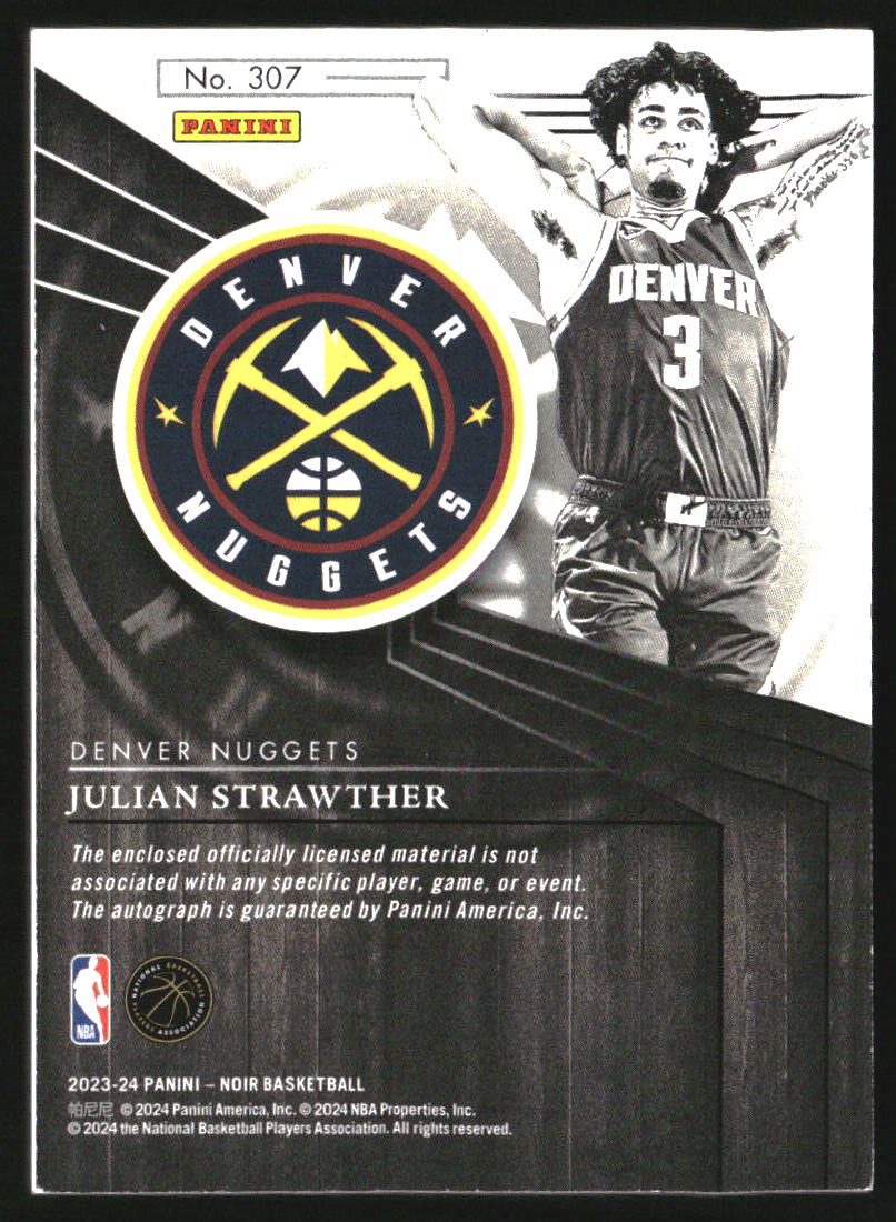 2023-24 Panini Noir #307 Julian Strawther RC Jersey Auto /99