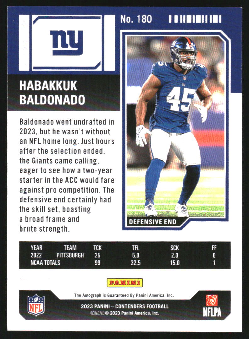 2023 Panini Contenders #180 Habakkuk Baldonado Rookie Autograph RC Auto