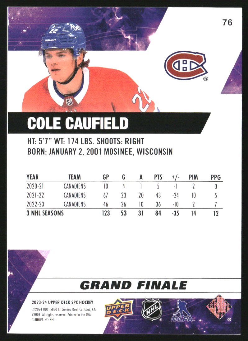2023-24 SPx Grand Finale #76 Cole Caufield /50