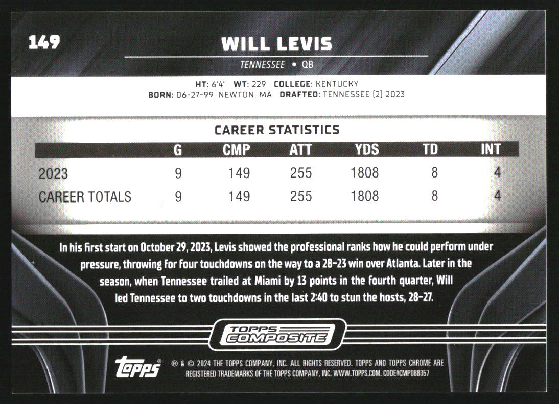2023 Topps Composite Chrome Black Green Wave Refractors #149 Will Levis RC /99