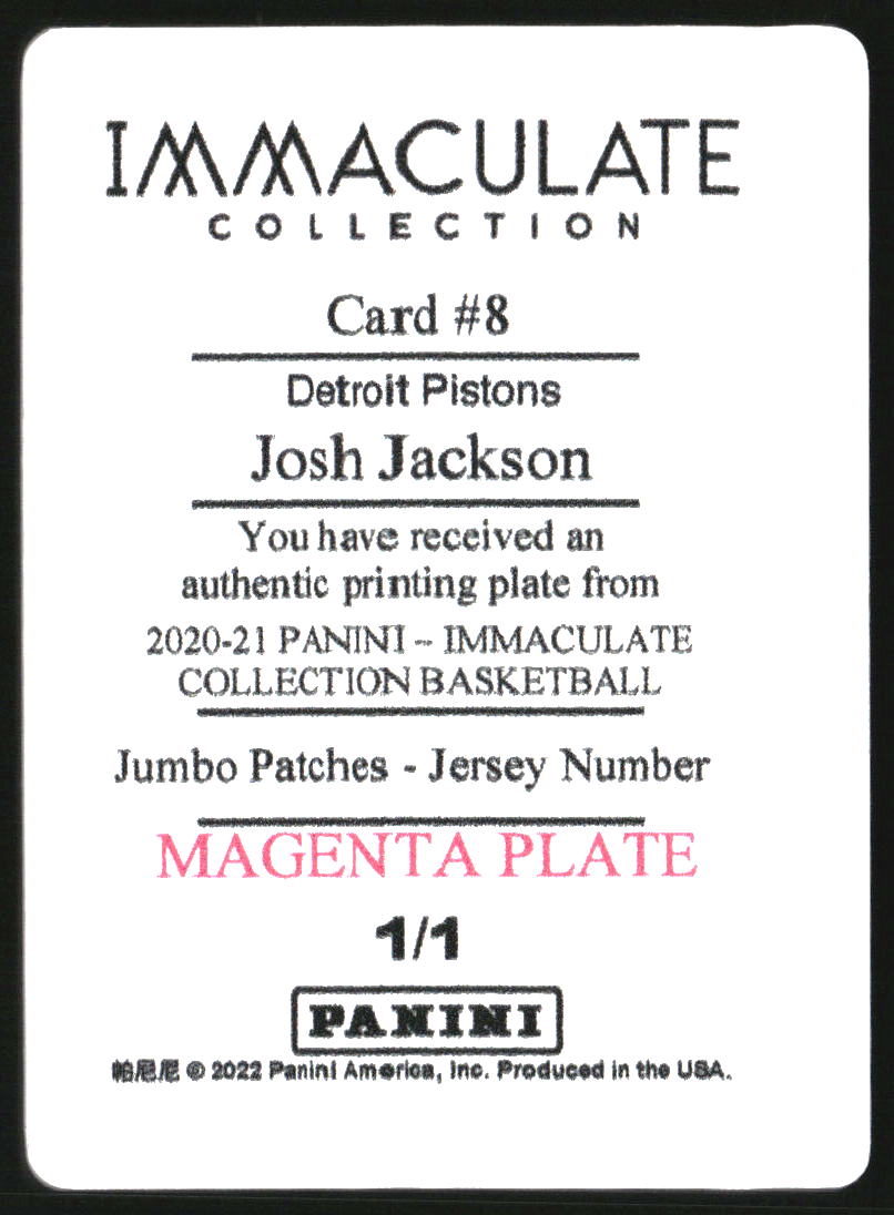 2020 Immaculate Collection Printing Plate Magenta Josh Jackson 1/1