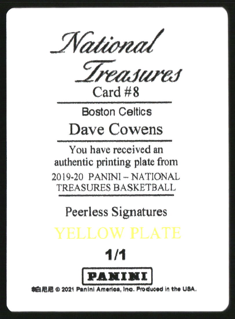 2019 National Treasures Printing Plate Yellow Dave Cowens 1/1
