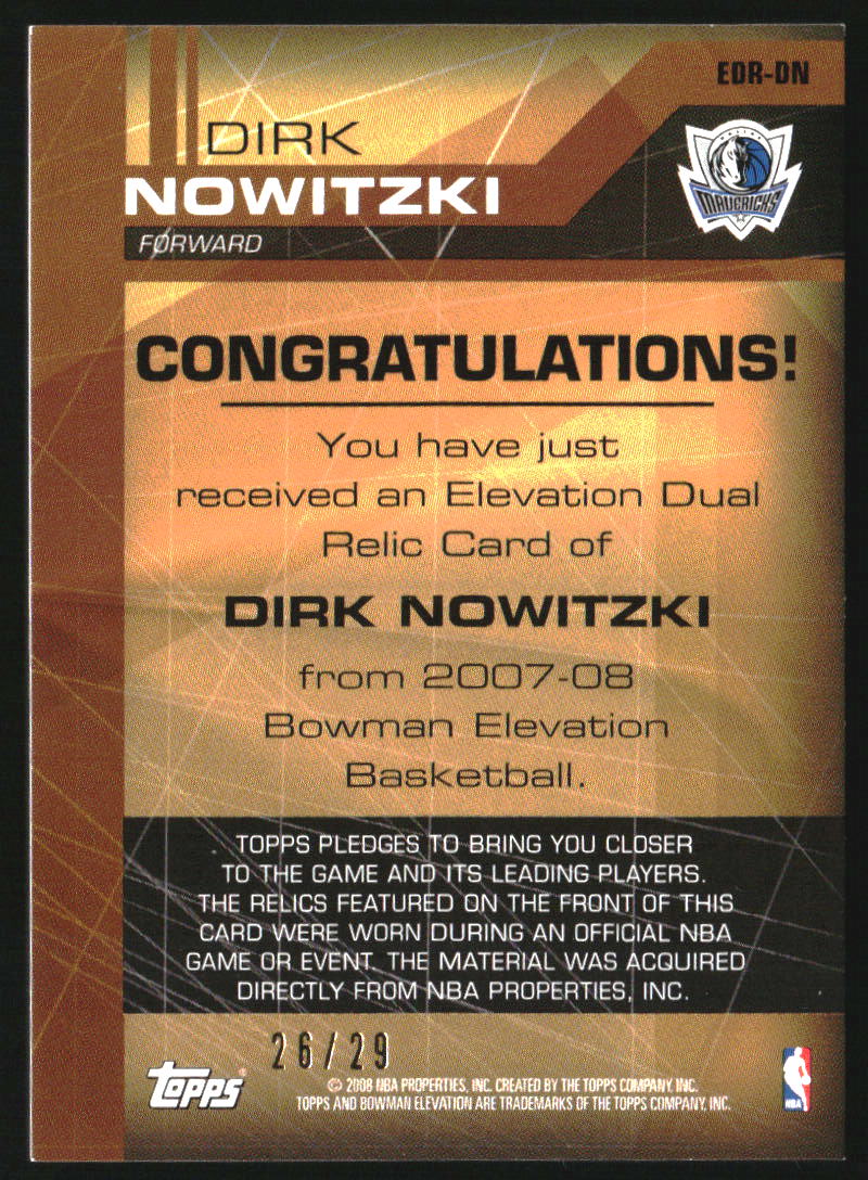 2007-08 Bowman Elevation Relics Dual Red #DN Dirk Nowitzki /29